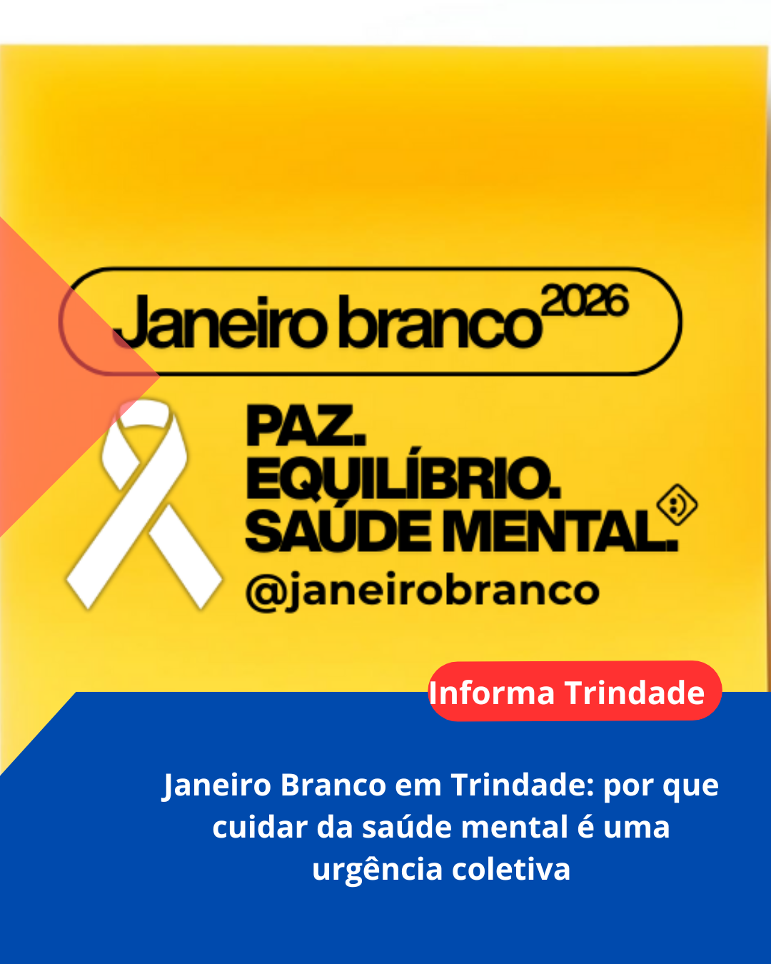 O Janeiro Branco em Trindade chama atenção para um tema que afeta todas as idades: a saúde mental. O artigo explica o que é a campanha, por que falar sobre o assunto é urgente e como escolas, empresas e o SUS atuam no cuidado emocional da população. Também aborda o impacto das redes sociais, o acesso aos serviços públicos e a importância de quebrar preconceitos. Um conteúdo informativo, humano e necessário para quem quer começar o ano cuidando da mente e da qualidade de vida.