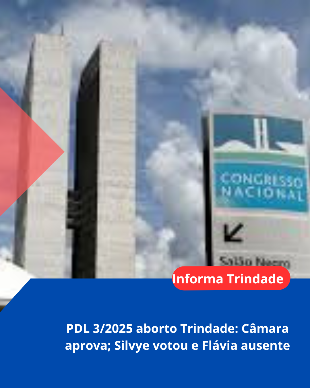 Na noite de 5 de novembro de 2025 a Câmara dos Deputados aprovou o Projeto de Decreto Legislativo PDL 3/2025 — que susta partes da resolução do Conanda sobre atendimento e acesso ao aborto legal para crianças e adolescentes vítimas de violência sexual. A proposta passou por 317 votos a favor, 111 contra e 1 abstenção e segue agora para o Senado. Entre os deputados com ligação a Trindade-GO, Silvye Alves votou a favor do PDL; Flávia Morais não participou da votação. Nesta matéria explicamos o que é o PDL, como votaram as parlamentares de Trindade, com análise de antecedentes, interesses e os prós e contras dessa escolha para o eleitorado local.